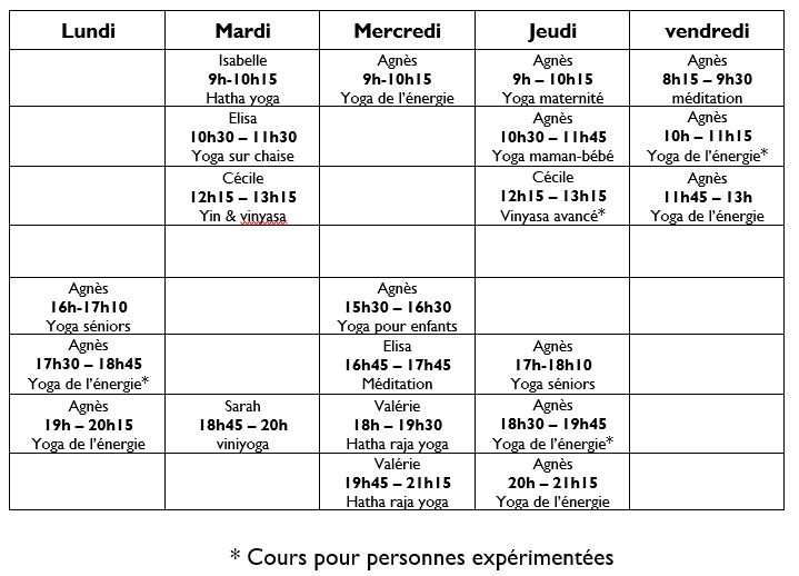 Agnès transmet le yoga de l’énergie qui vise à l’équilibre entre corps et esprit, équilibre entre tonicité, souplesse et détente pour permettre d’être dans l’action joyeuse et régénérante. C’est l’effort juste qui demande un ajustement constant et personnel et conduit vers une connaissance de soi réjouissante.
